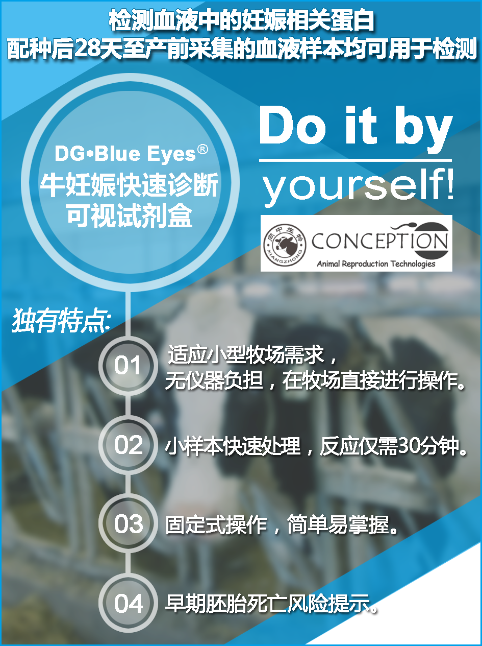 DG29? 是唯一經(jīng)第三方管理機(jī)構(gòu)(加拿大食品檢疫局)認(rèn)證的血液妊娠診斷產(chǎn)品,自2000年開始在自加拿大投入使用,已經(jīng)超過3000家加拿大牧場(chǎng)使用本產(chǎn)品,全球有近萬家牧場(chǎng)用戶。