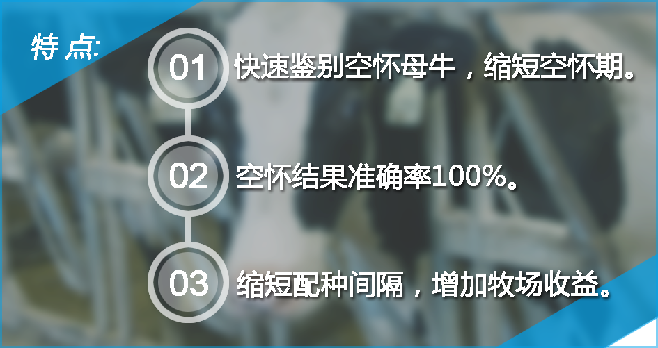 在DG29? 進(jìn)入中國市場(chǎng)不到兩年的時(shí)間里,已經(jīng)為客戶牧場(chǎng)檢測(cè)超過10萬頭份,空懷牛鑒定準(zhǔn)確率100%,并發(fā)現(xiàn)部分牧場(chǎng)在管理上的潛在風(fēng)險(xiǎn),真正幫助客戶提高牧場(chǎng)效益,產(chǎn)品得到用戶的高度認(rèn)可(換句話說就是牧場(chǎng)操作人員用過之后還想再用,因?yàn)椴粌H操作簡(jiǎn)單反應(yīng)快速結(jié)果準(zhǔn)確而且售后服務(wù)也非常好!)。