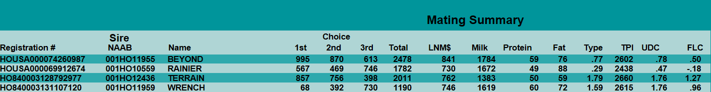 我們?cè)诜?wù)牧場(chǎng)的時(shí)候,發(fā)現(xiàn)許多牧場(chǎng)一年僅使用有限的幾頭公牛,大部分牧場(chǎng)害怕使用的公牛太多造成后期管理混亂。殊不知,使用的公牛頭數(shù)太少,降低了牛群血統(tǒng)多樣性,增加了牛群風(fēng)險(xiǎn),同時(shí),公牛頭數(shù)太少勢(shì)必不能使全群所有牛均達(dá)到理想的育種目標(biāo),反而極大地降低了牛群的遺傳進(jìn)展。