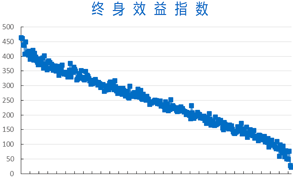 上圖中橫坐標為月齡,縱坐標為遺傳效益指數,每個點代表一頭牛,不同顏色代表不同胎次牛。