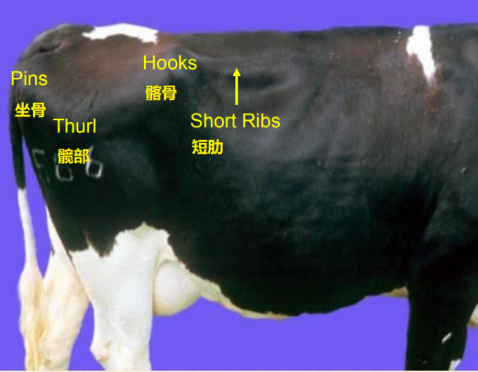固定的評分方向,從奶牛后側和右側評估,減少瘤胃充盈度對體況評分的影響。